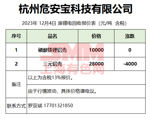 今日杭州危安宝,废锂电回收报价已更新,有货的朋友欢迎联系我们!