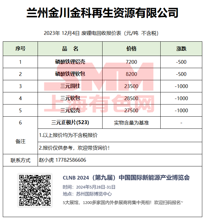 今日金川金科,废锂电回收报价已更新,有货的朋友欢迎联系我们!