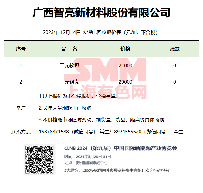 今日广西智亮,废锂电回收报价已更新,有货的朋友欢迎联系我们!