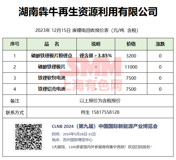 12月15日湖南犇牛 废锂电回收报价