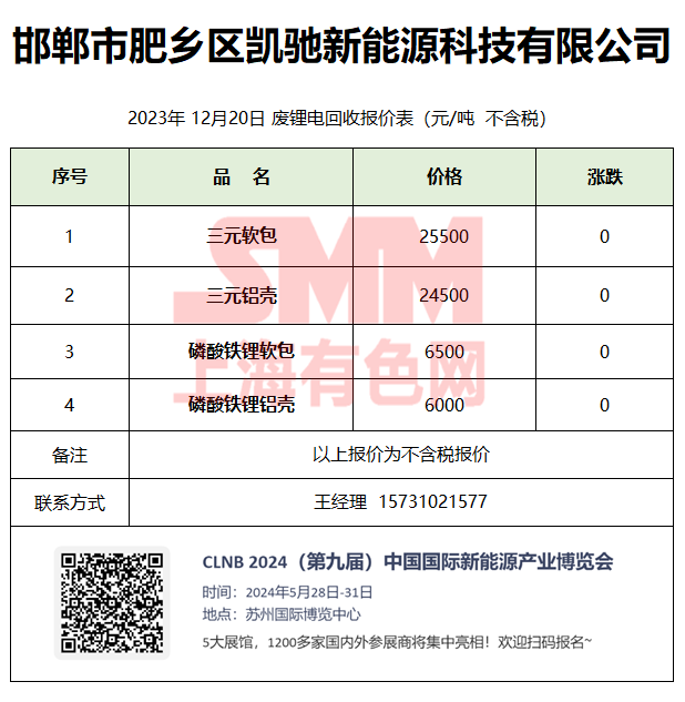 12月20日邯郸凯驰 废锂电回收报价