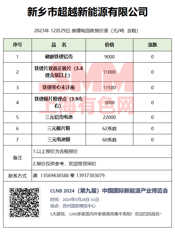 12月29日新乡超越 废锂电回收报价