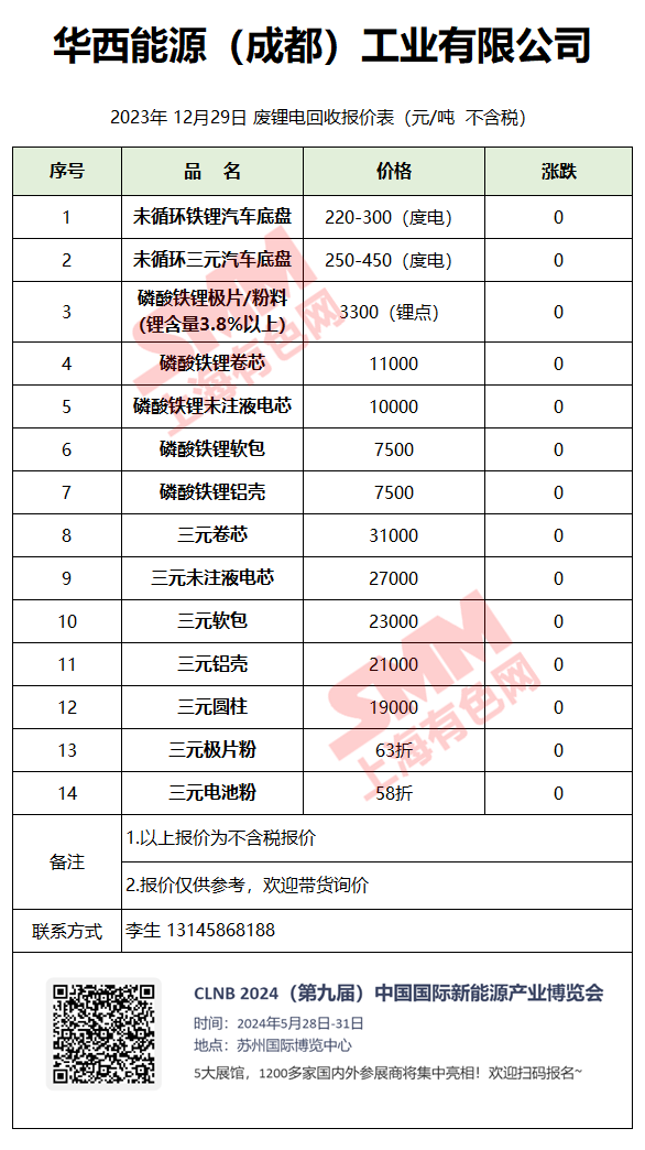 今日华西能源(成都),废锂电回收报价已更新,有货的朋友欢迎联系我们!