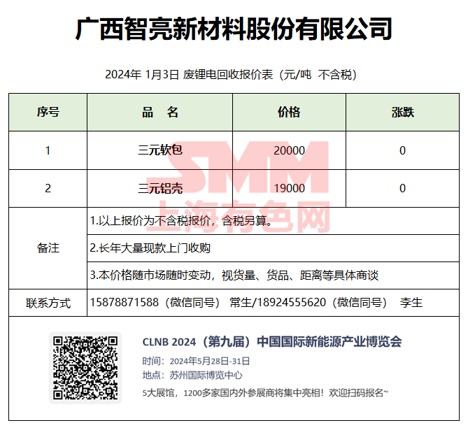 今日广西智亮,废锂电回收报价已更新,有货的朋友欢迎联系我们!