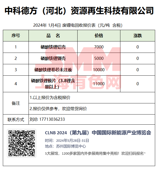 今日邯郸中科,废锂电回收报价已更新,有货的朋友欢迎联系我们!
