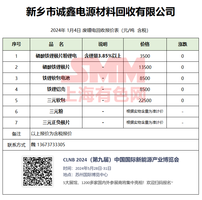 今日新乡诚鑫,废锂电回收报价已更新,有货的朋友欢迎联系我们!
