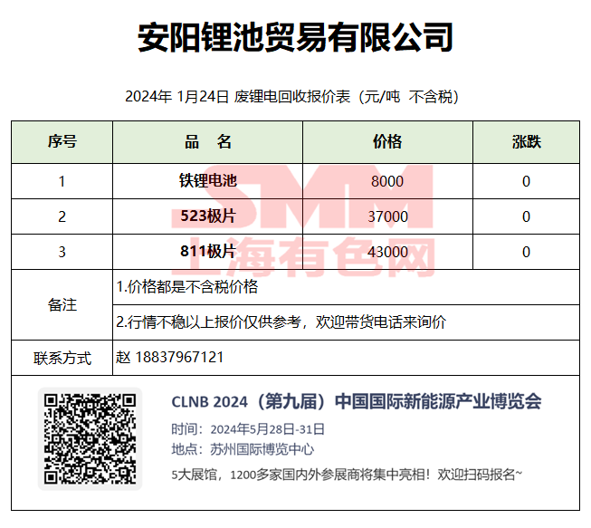 今日安阳锂池,废锂电回收报价已更新,有货的朋友欢迎联系我们!