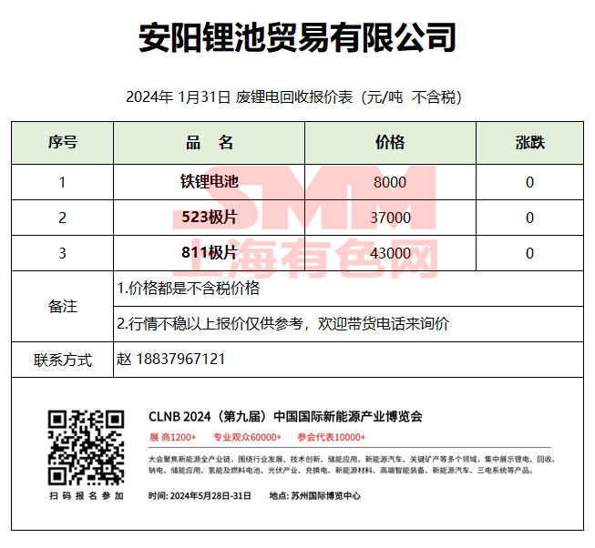 今日安阳锂池,废锂电回收报价已更新,有货的朋友欢迎联系我们!