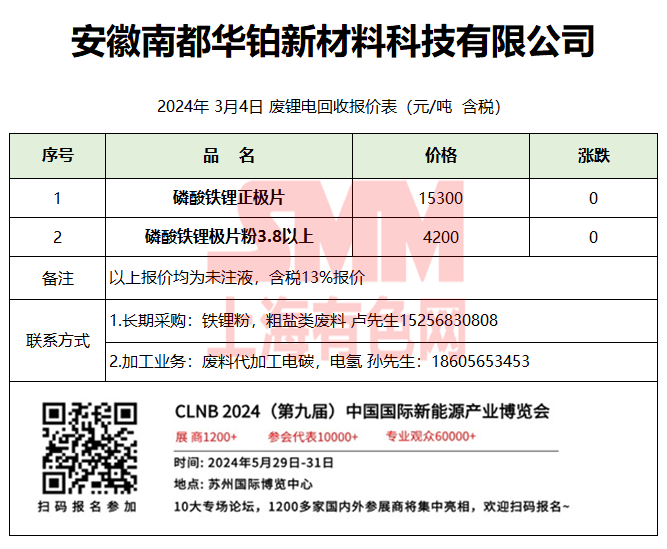 今日安徽华铂,废锂电回收报价已更新,有货的朋友欢迎联系我们!