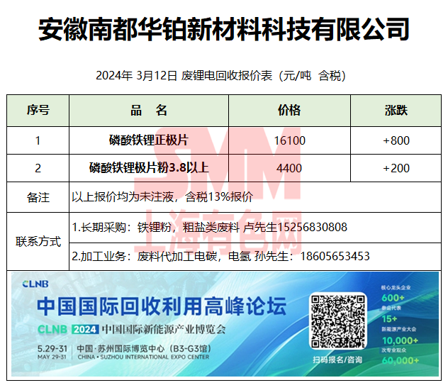 今日安徽华铂,废锂电回收报价已更新,有货的朋友欢迎联系我们!