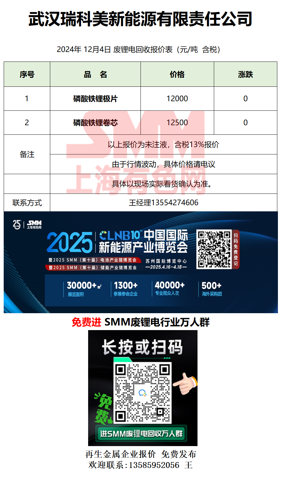 今日武汉瑞科美 废锂电采购报价已更新,有货的朋友欢迎联系我们!
