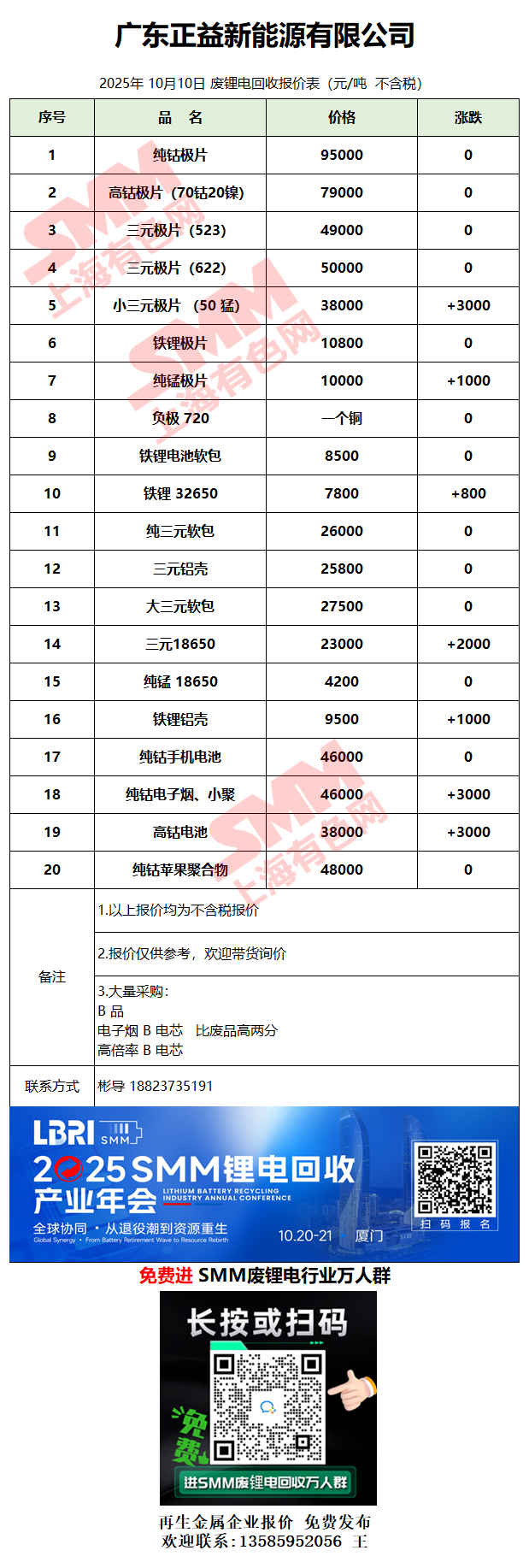 今日广东正益 废锂电采购报价已更新,有货的朋友欢迎联系我们!