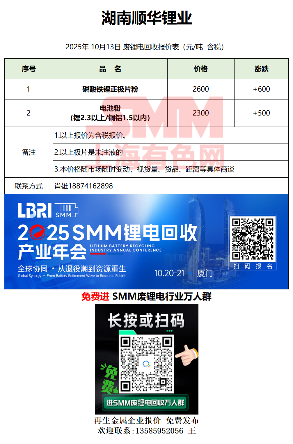 10月13日湖南顺华 废锂电采购报价