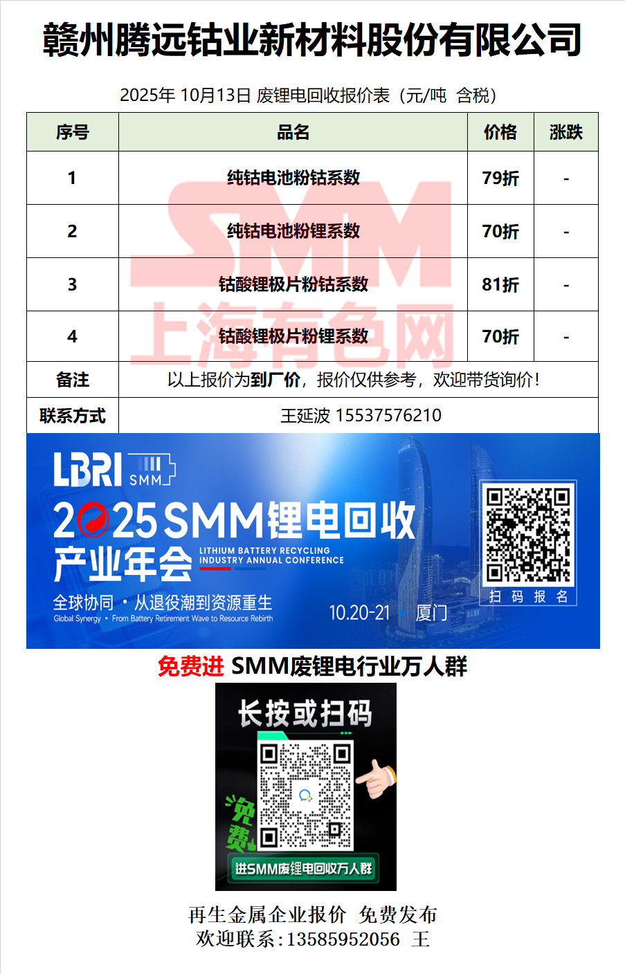 10月13日赣州腾远 废锂电采购报价
