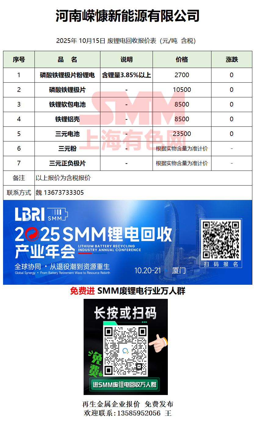来源:上海有色金属网发布时间:2025-10-15 14:56:00