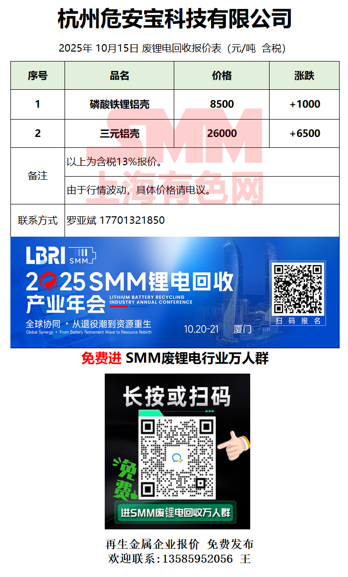 来源:上海有色金属网发布时间:2025-10-15 14:58:00