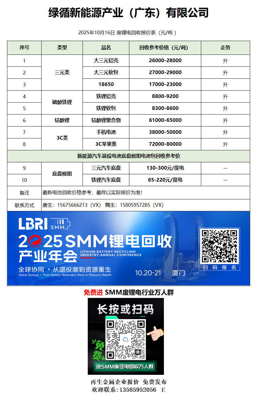 今日绿循新能源 废锂电采购报价已更新,有货的朋友欢迎联系我们!
