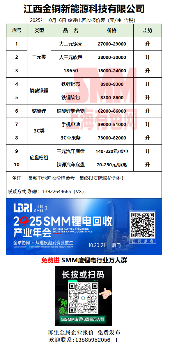 今日江西金铜 废锂电采购报价已更新,有货的朋友欢迎联系我们!