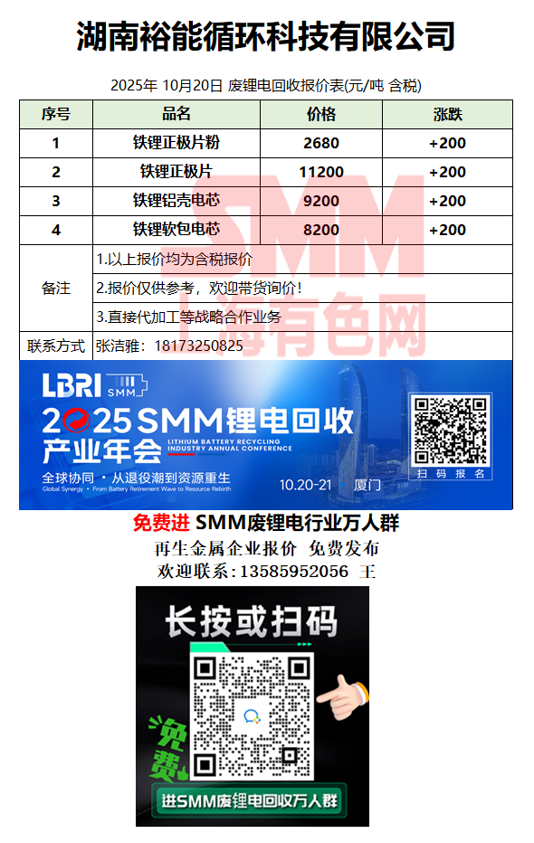 今日湖南裕能循环 废锂电采购报价已更新,有货的朋友欢迎联系我们!