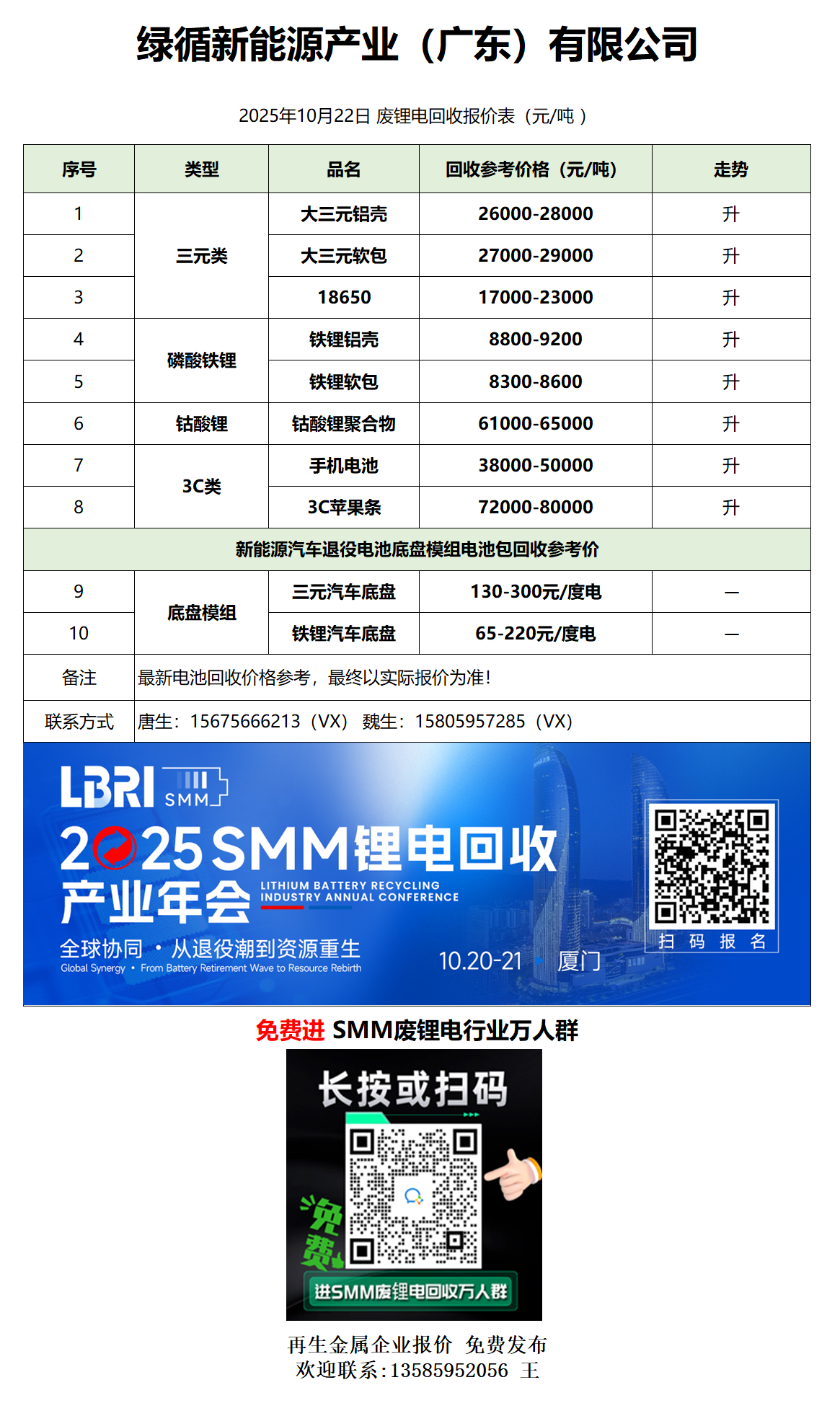 今日绿循新能源 废锂电采购报价已更新,有货的朋友欢迎联系我们!