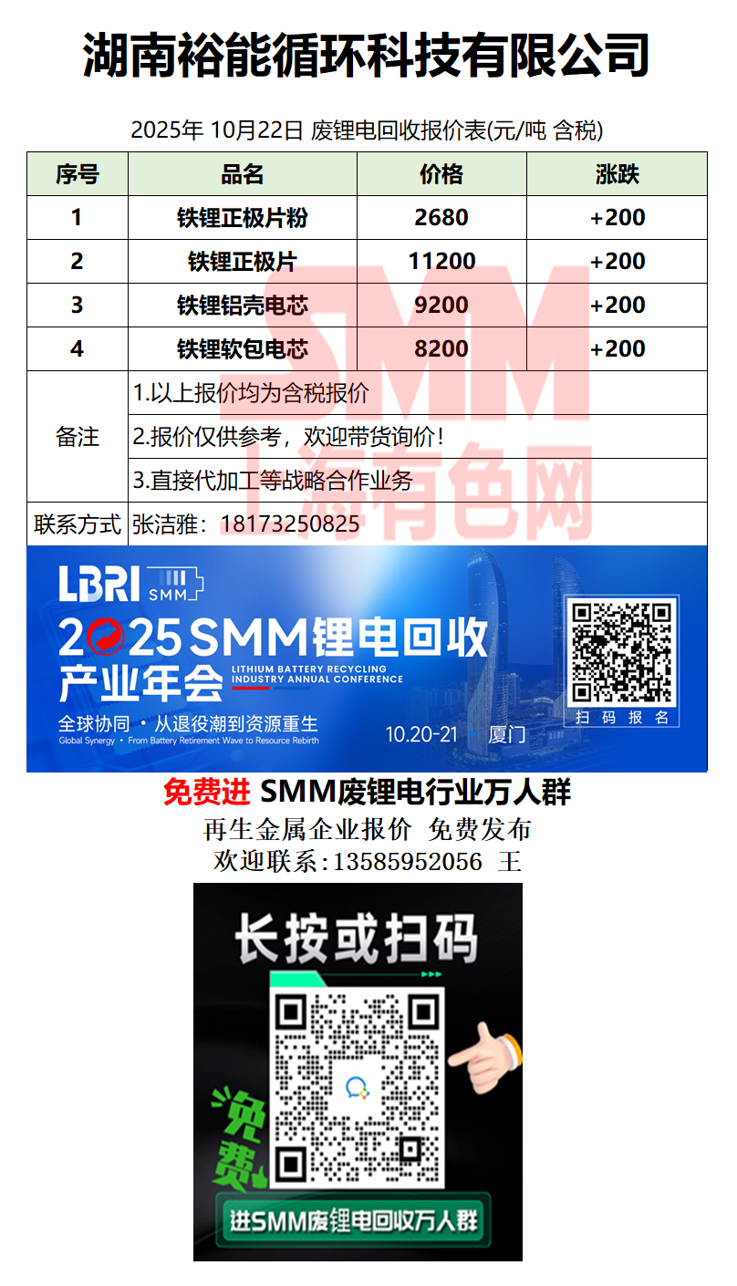 10月22日湖南裕能循环 废锂电采购报价