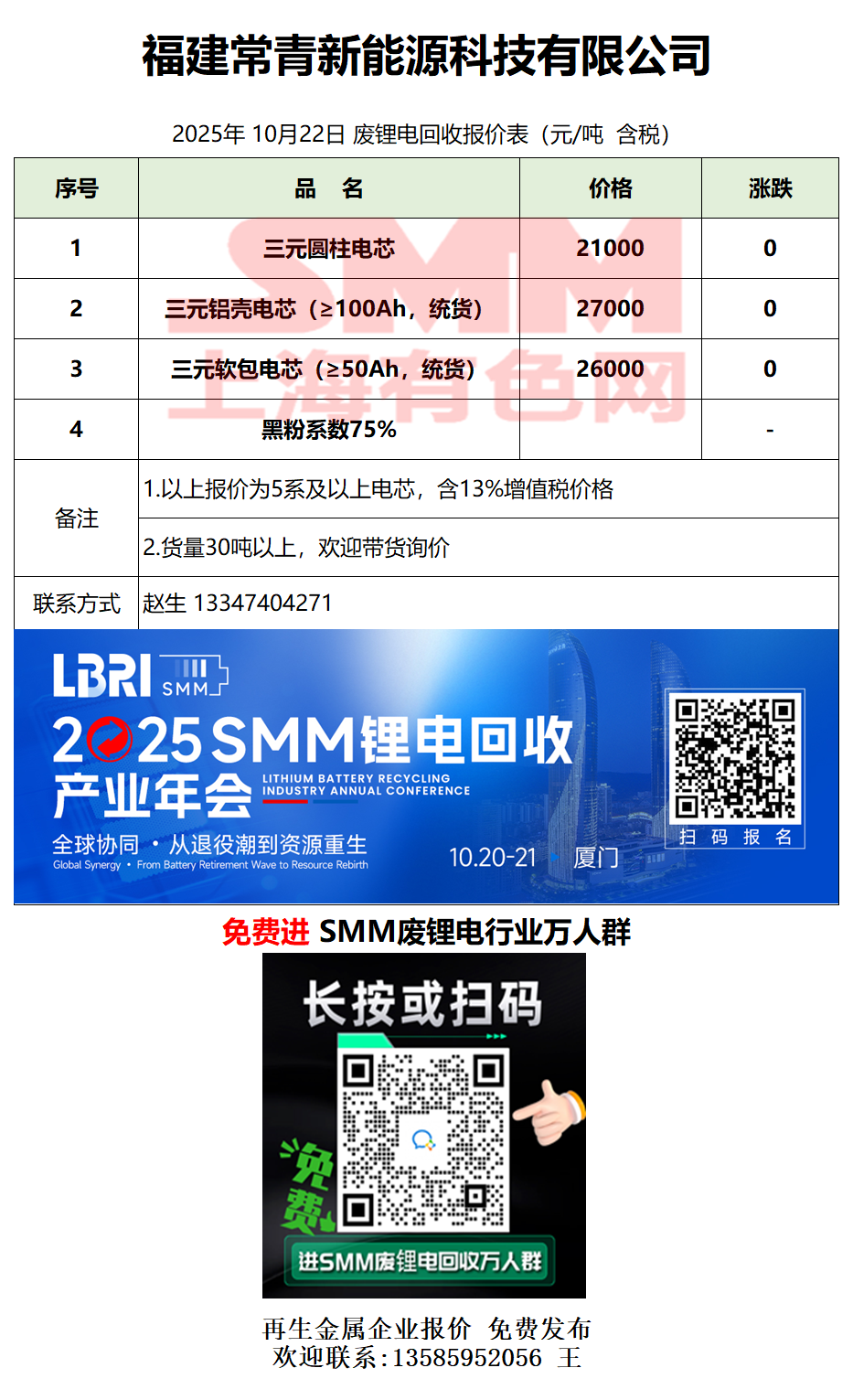 来源:上海有色金属网发布时间:2025-10-22 17:00:00
