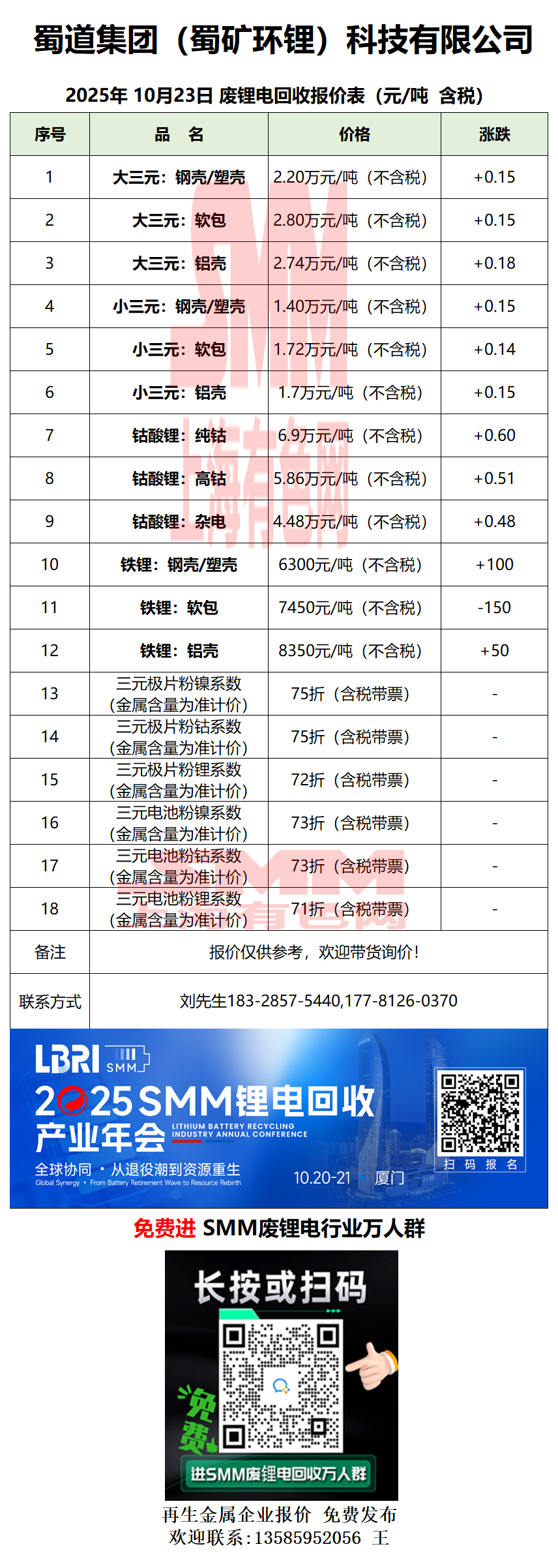 今日蜀道集团 废锂电采购报价已更新,有货的朋友欢迎联系我们!