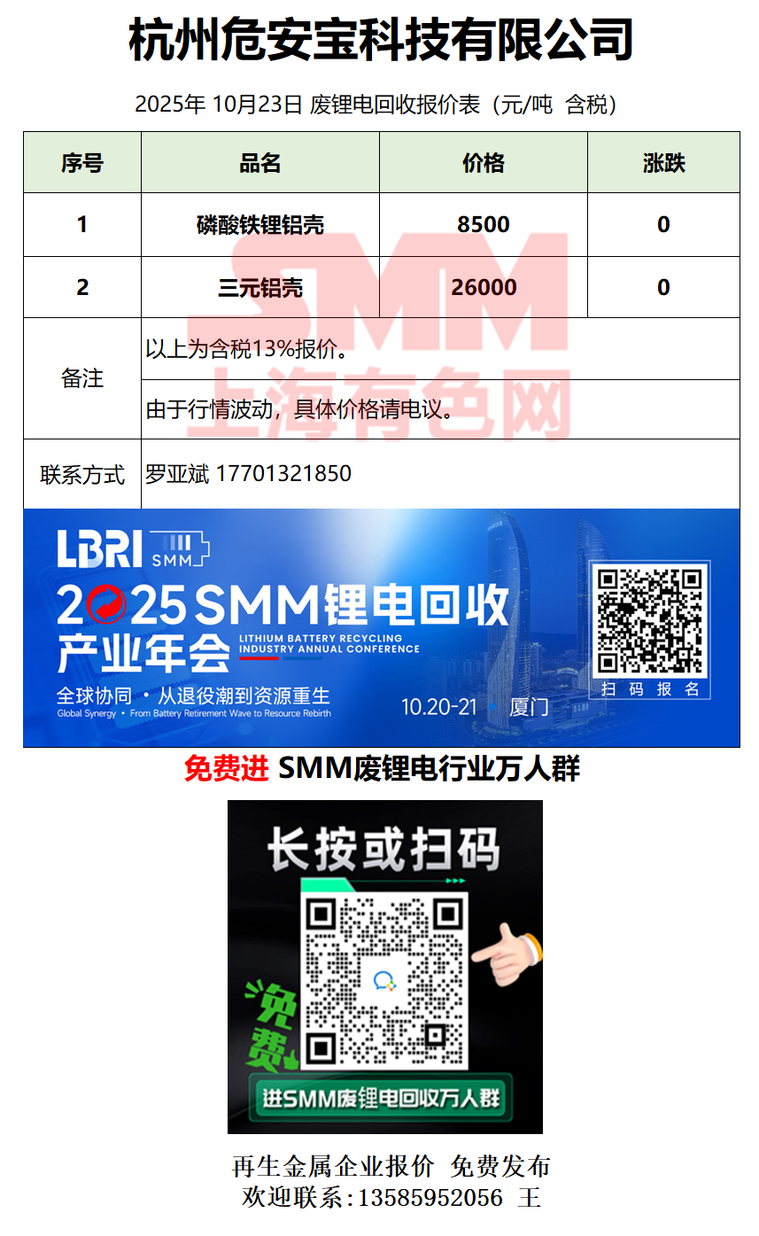 来源:上海有色金属网发布时间:2025-10-23 16:32:00