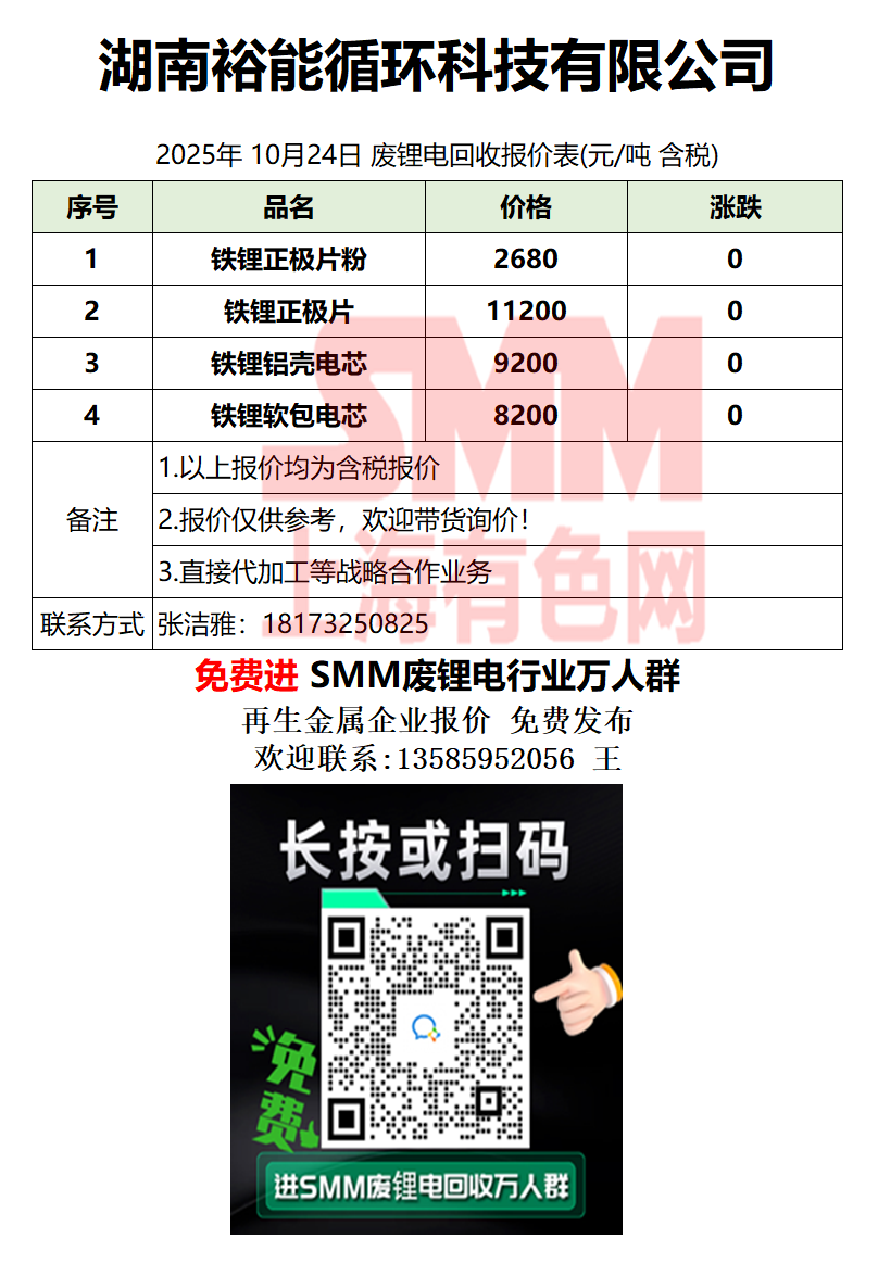 今日湖南裕能循环 废锂电采购报价已更新,有货的朋友欢迎联系我们!