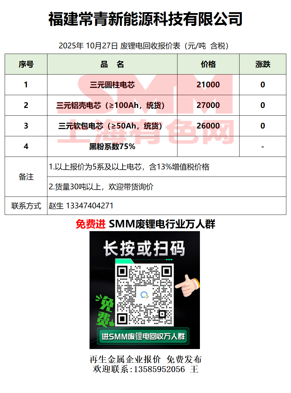 今日福建常青 废锂电采购报价已更新,有货的朋友欢迎联系我们!