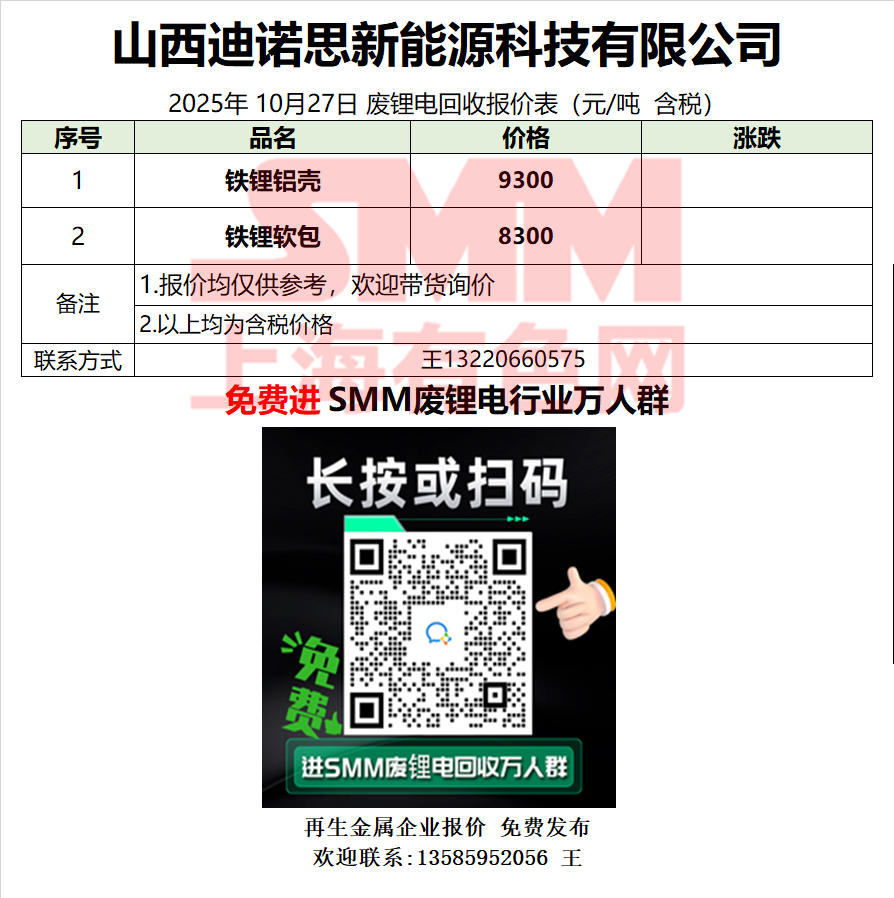 今日山西迪诺思 废锂电采购报价已更新,有货的朋友欢迎联系我们!