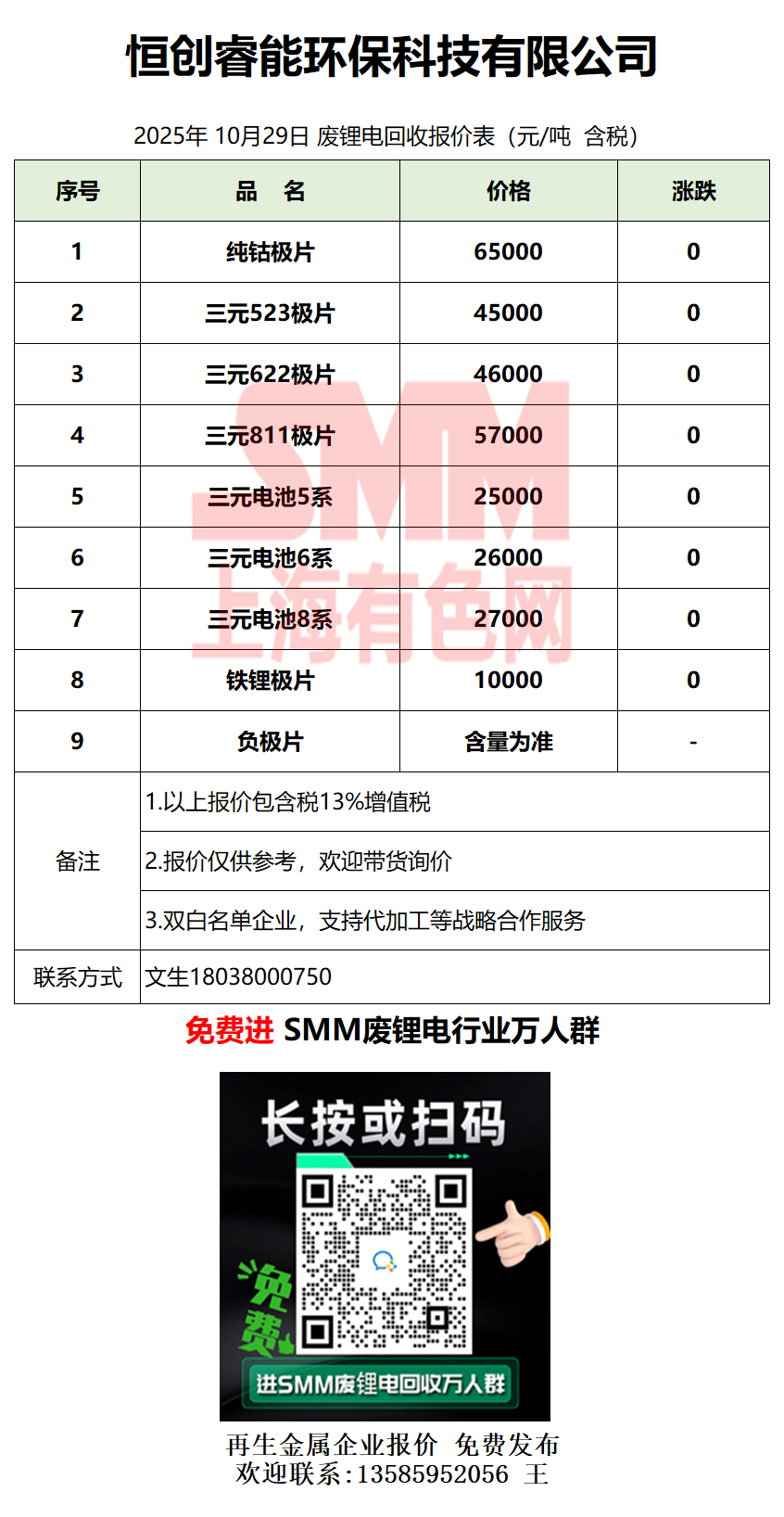 10月29日恒创睿能 废锂电采购报价