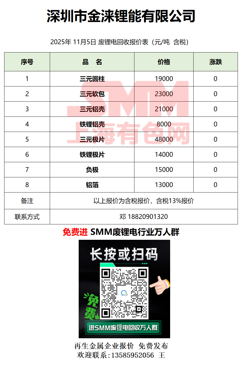 11月5日深圳金涞 废锂电采购报价