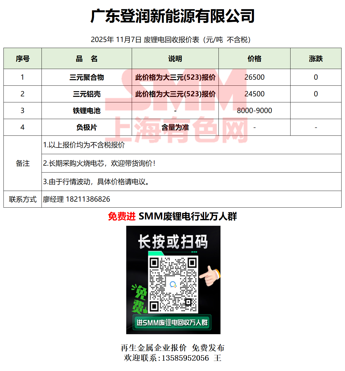 今日广东登润 废锂电采购报价已更新,有货的朋友欢迎联系我们!
