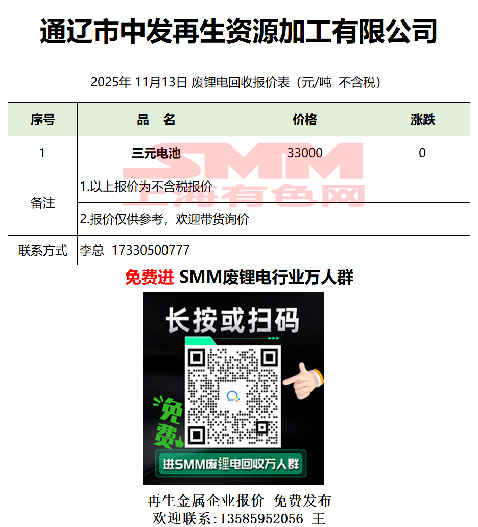 今日通辽中发 废锂电采购报价已更新,有货的朋友欢迎联系我们!