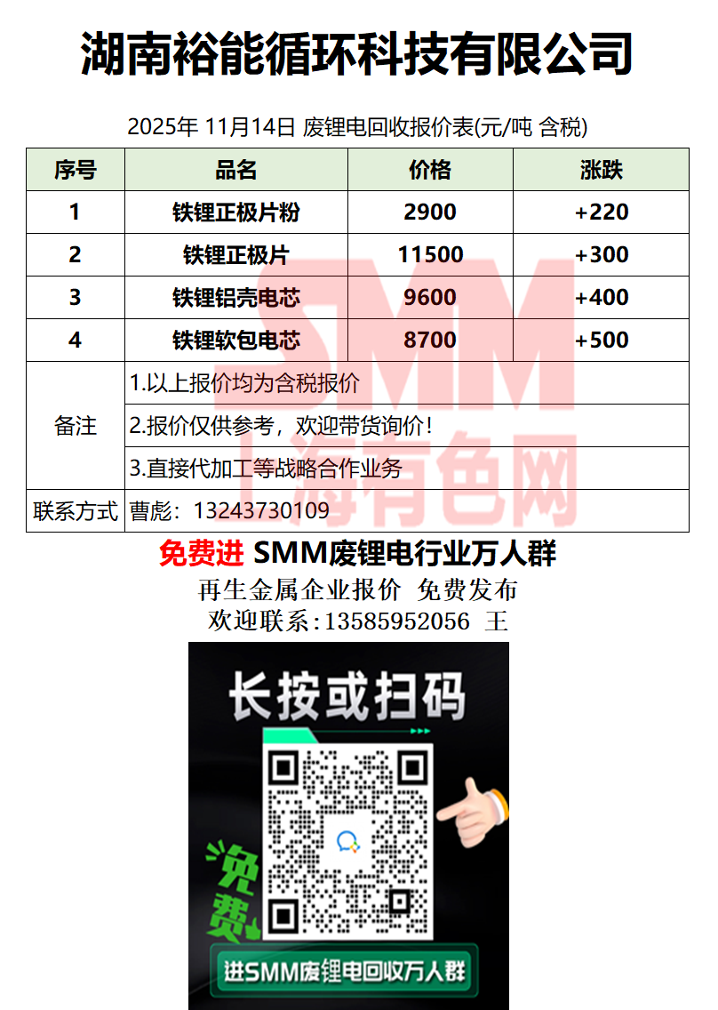 今日湖南裕能循环 废锂电采购报价已更新,有货的朋友欢迎联系我们!