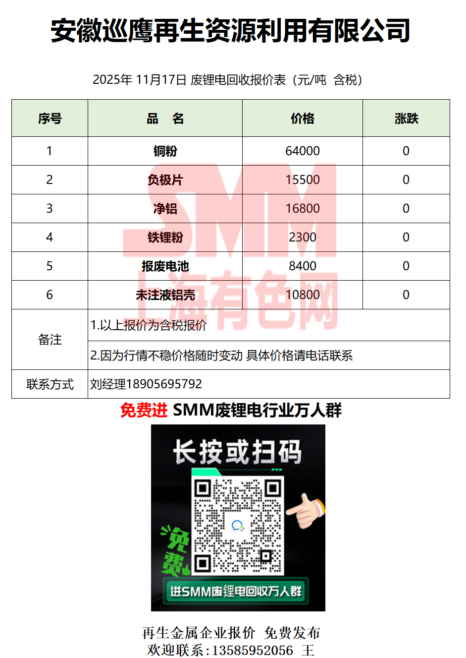 今日安徽巡鹰 废锂电采购报价已更新,有货的朋友欢迎联系我们!