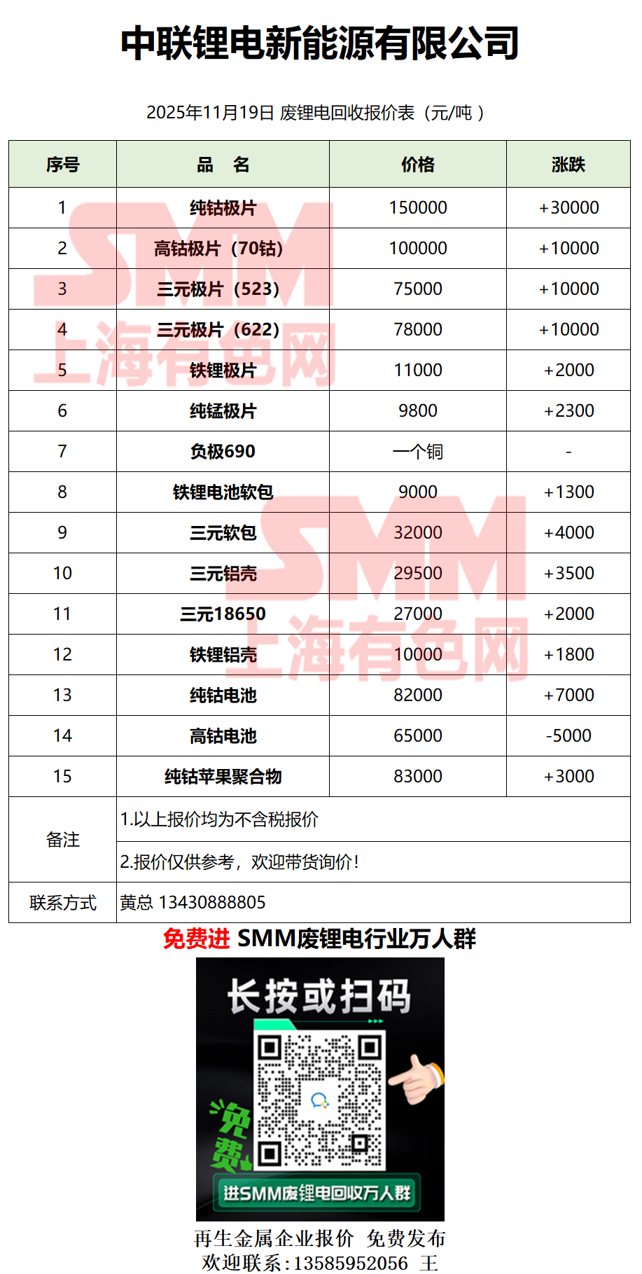 今日中联锂电 废锂电采购报价已更新,有货的朋友欢迎联系我们!