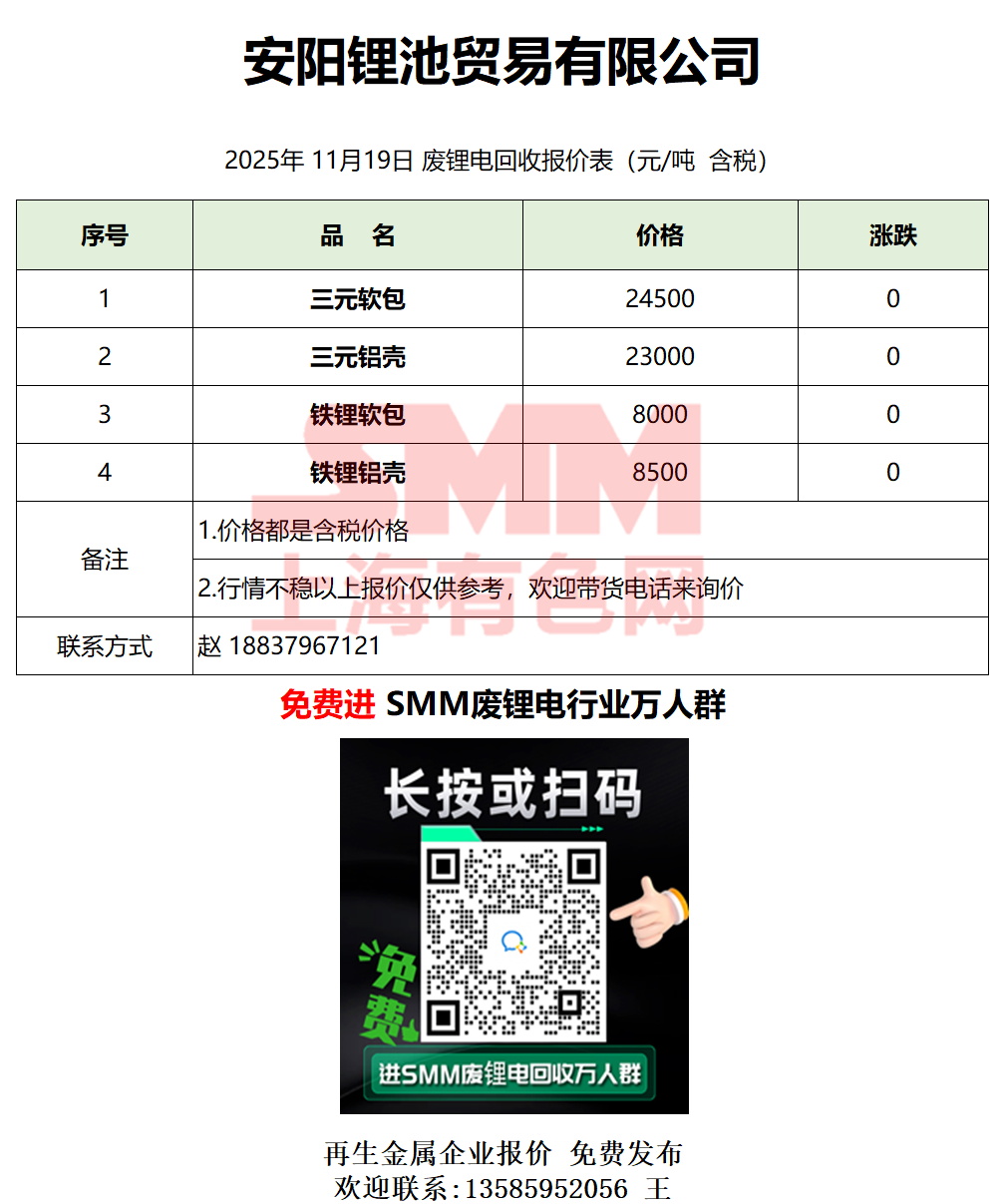 11月19日安阳锂池 废锂电采购报价