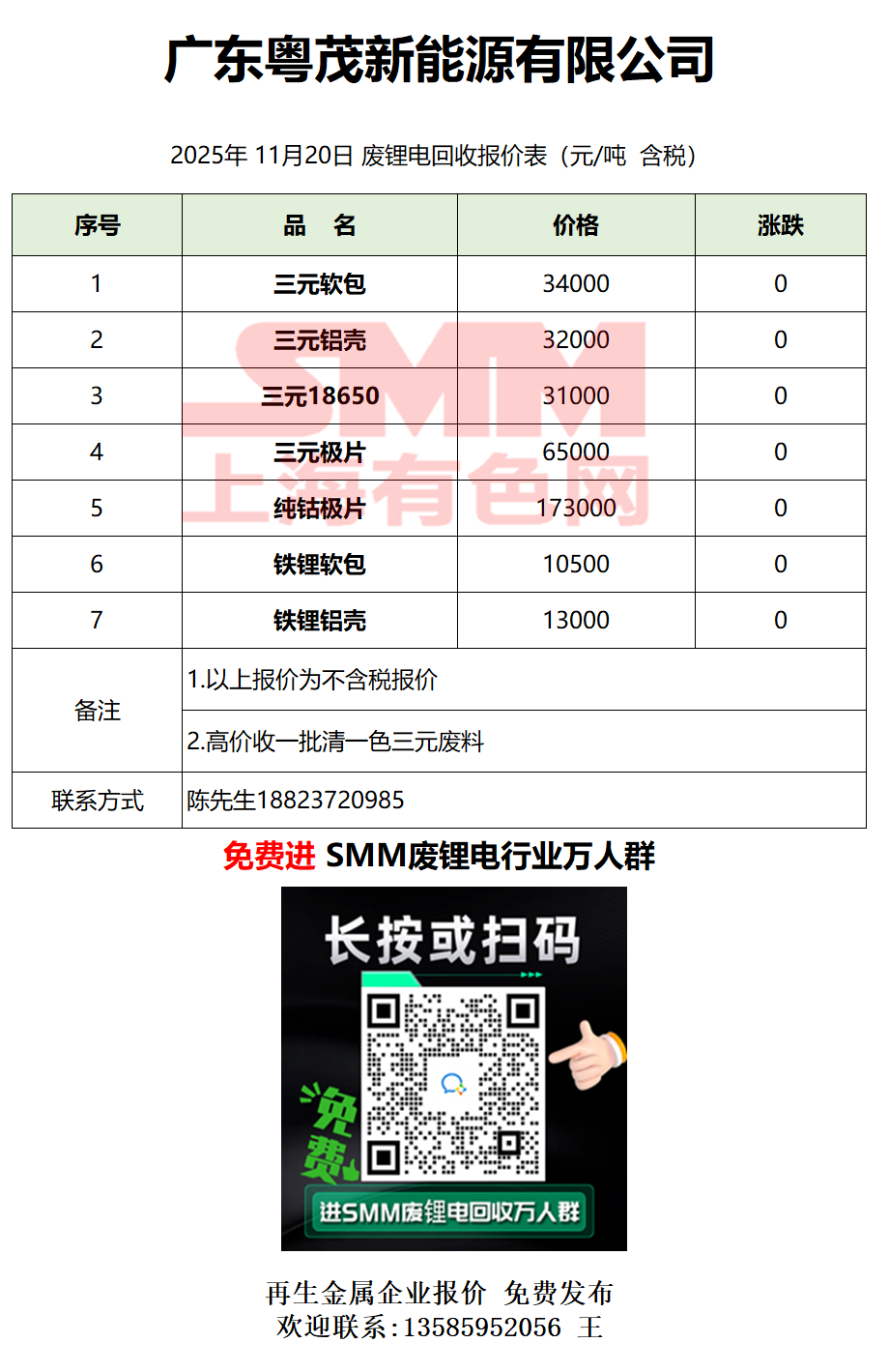 今日广东粤茂 废锂电采购报价已更新,有货的朋友欢迎联系我们!