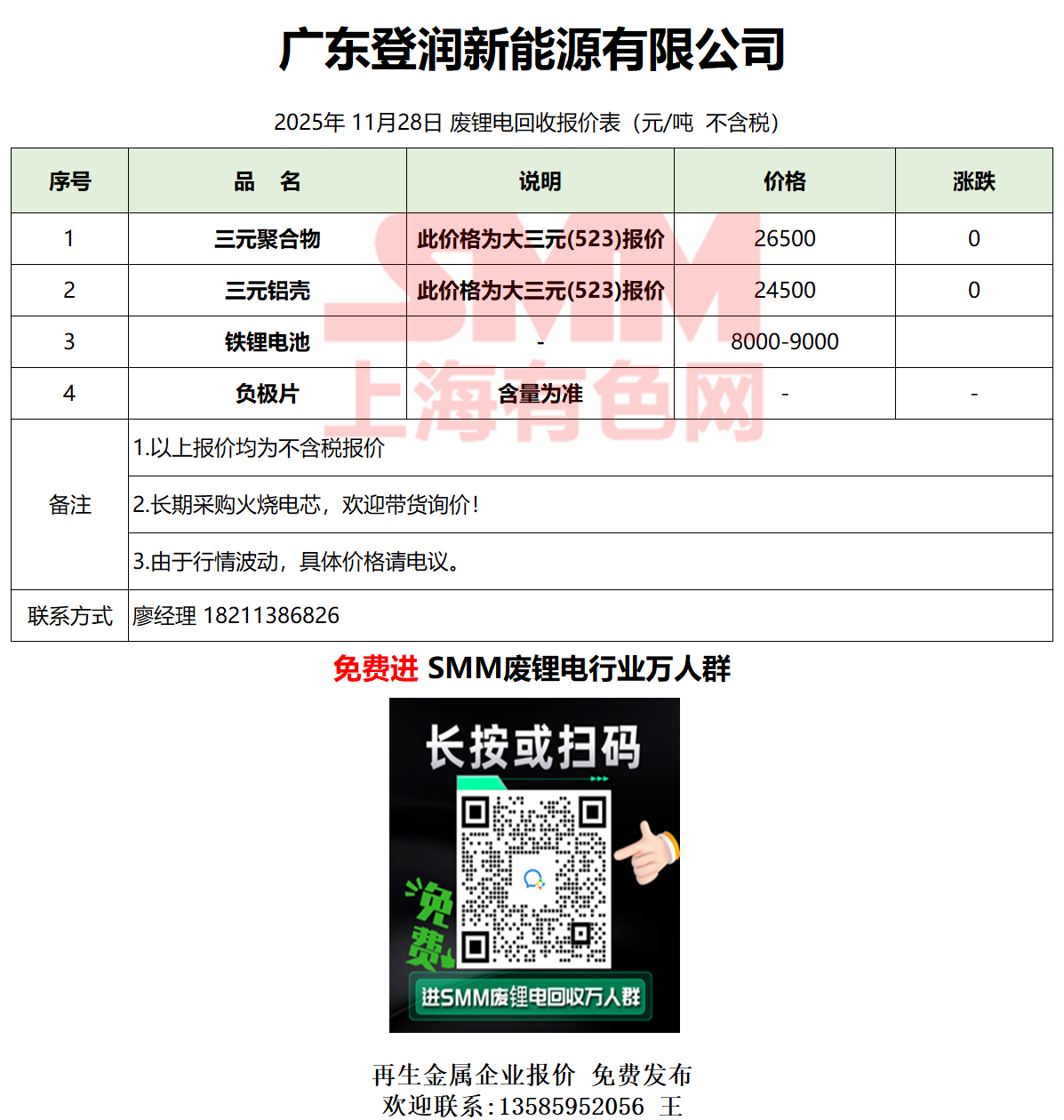 今日广东登润 废锂电采购报价已更新,有货的朋友欢迎联系我们!