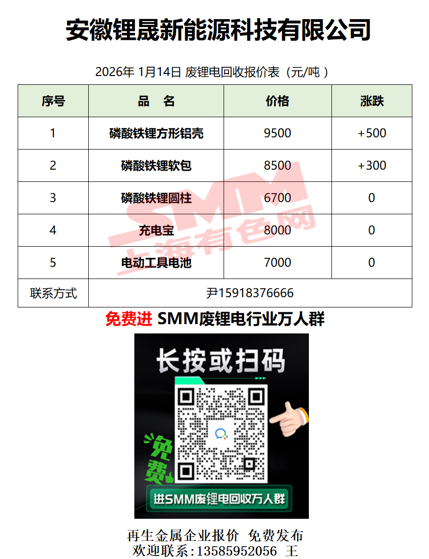 1月14日安徽锂晟 废锂电采购报价