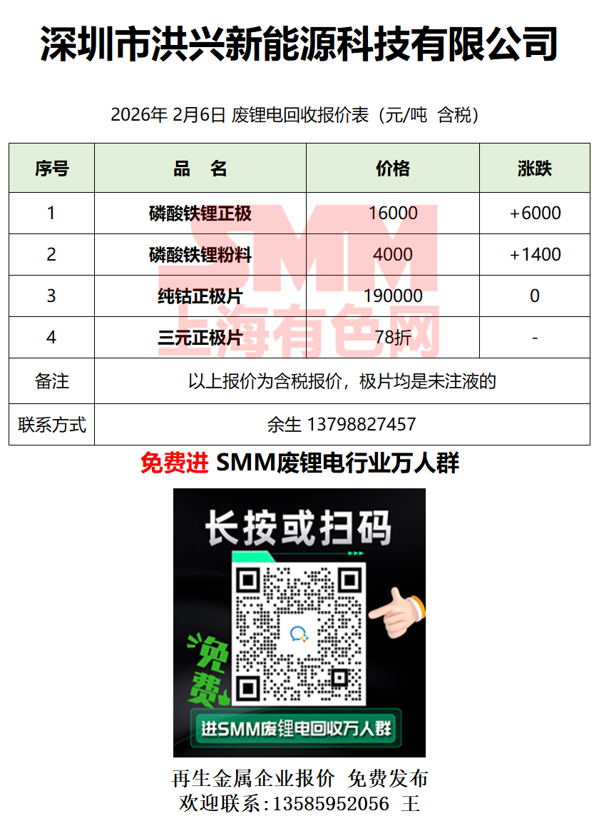 2月6日深圳洪兴 废锂电采购报价