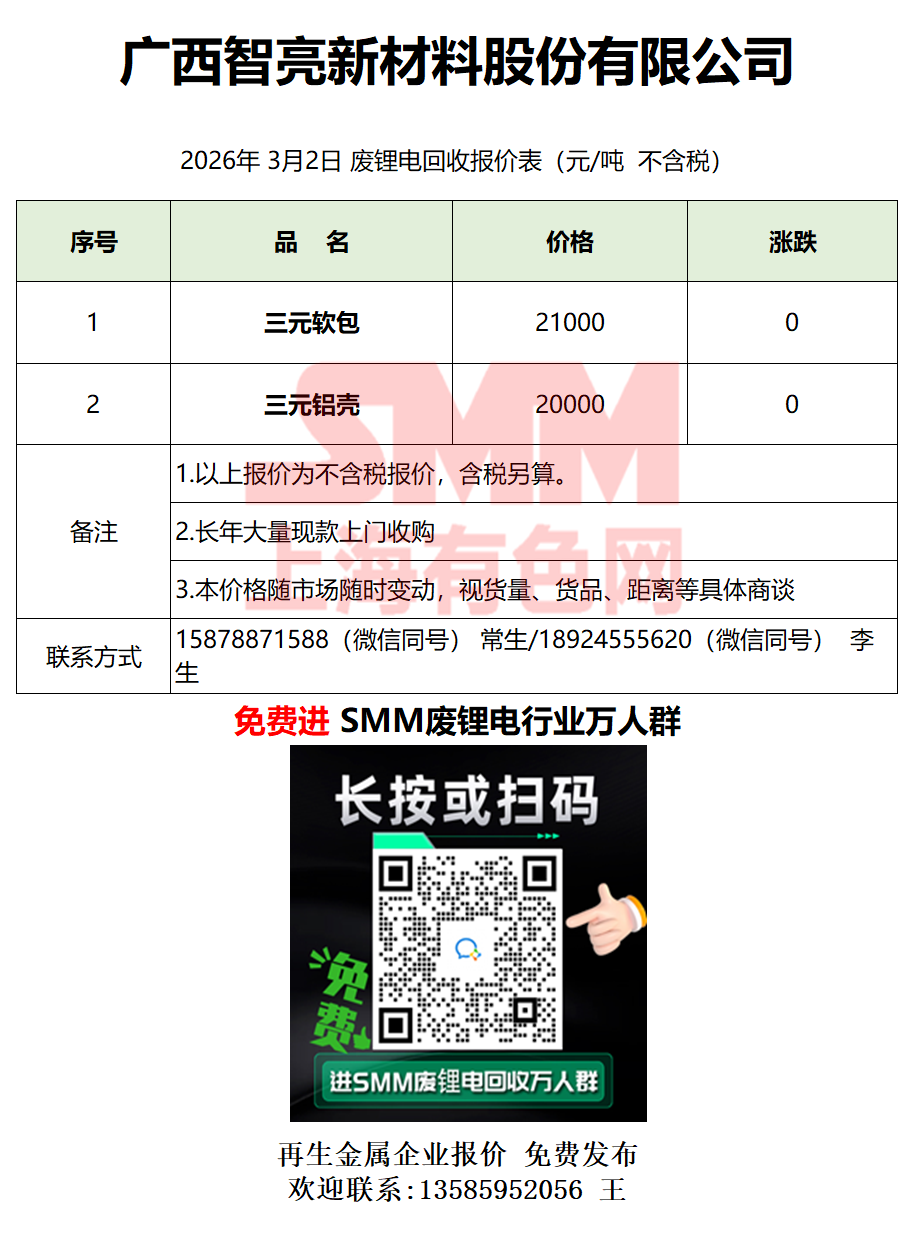 3月2日广西智亮 废锂电采购报价