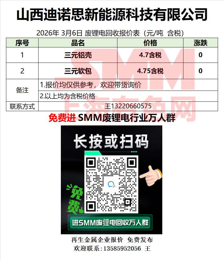 今日山西迪诺思 废锂电采购报价已更新,有货的朋友欢迎联系我们!