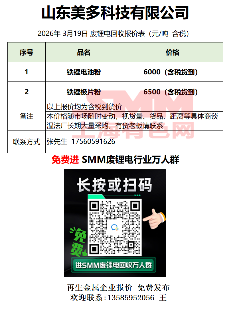 3月19日山东美多 废锂电采购报价
