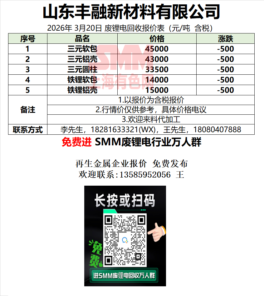 今日山东丰融 废锂电采购报价已更新,有货的朋友欢迎联系我们!