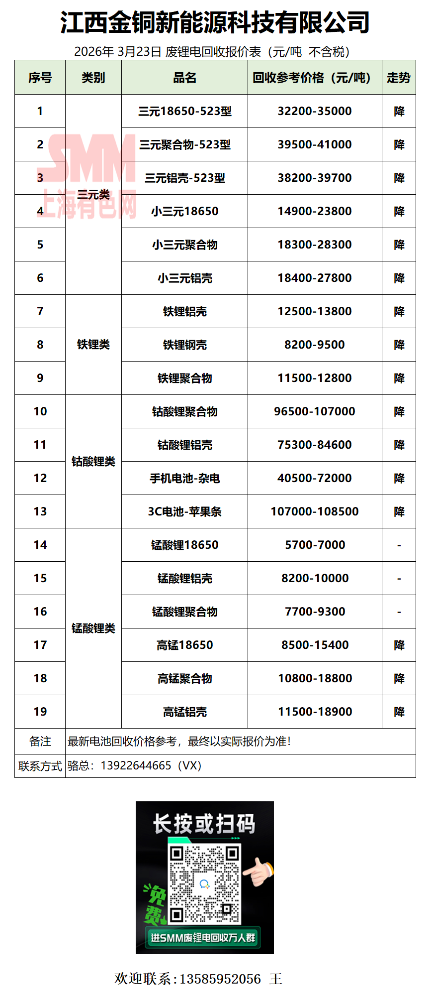 3月23日江西金铜 废锂电采购报价