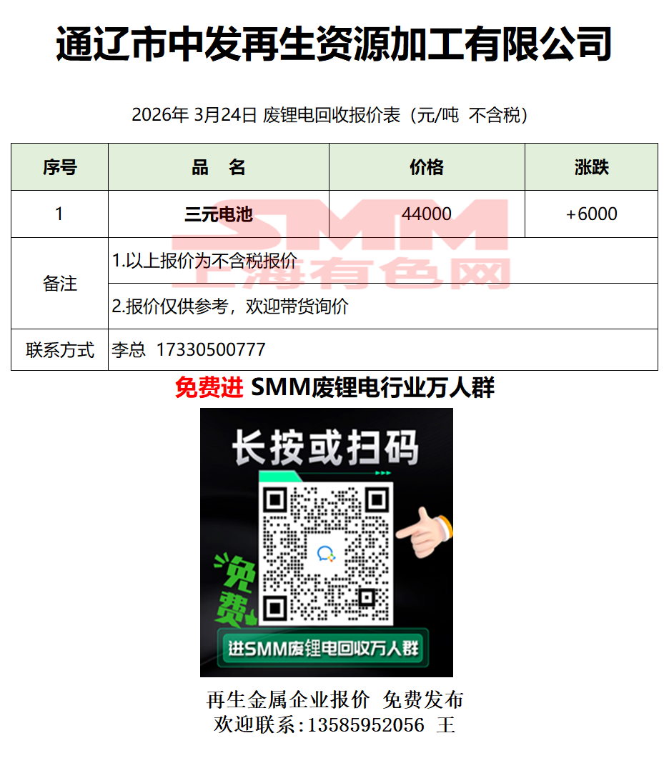 3月24日通辽中发 废锂电采购报价