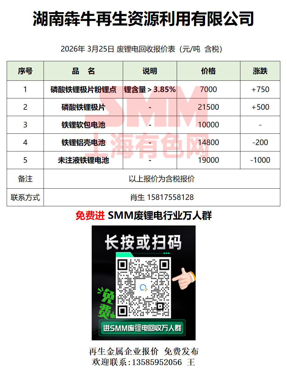 3月25日湖南犇牛 废锂电采购报价